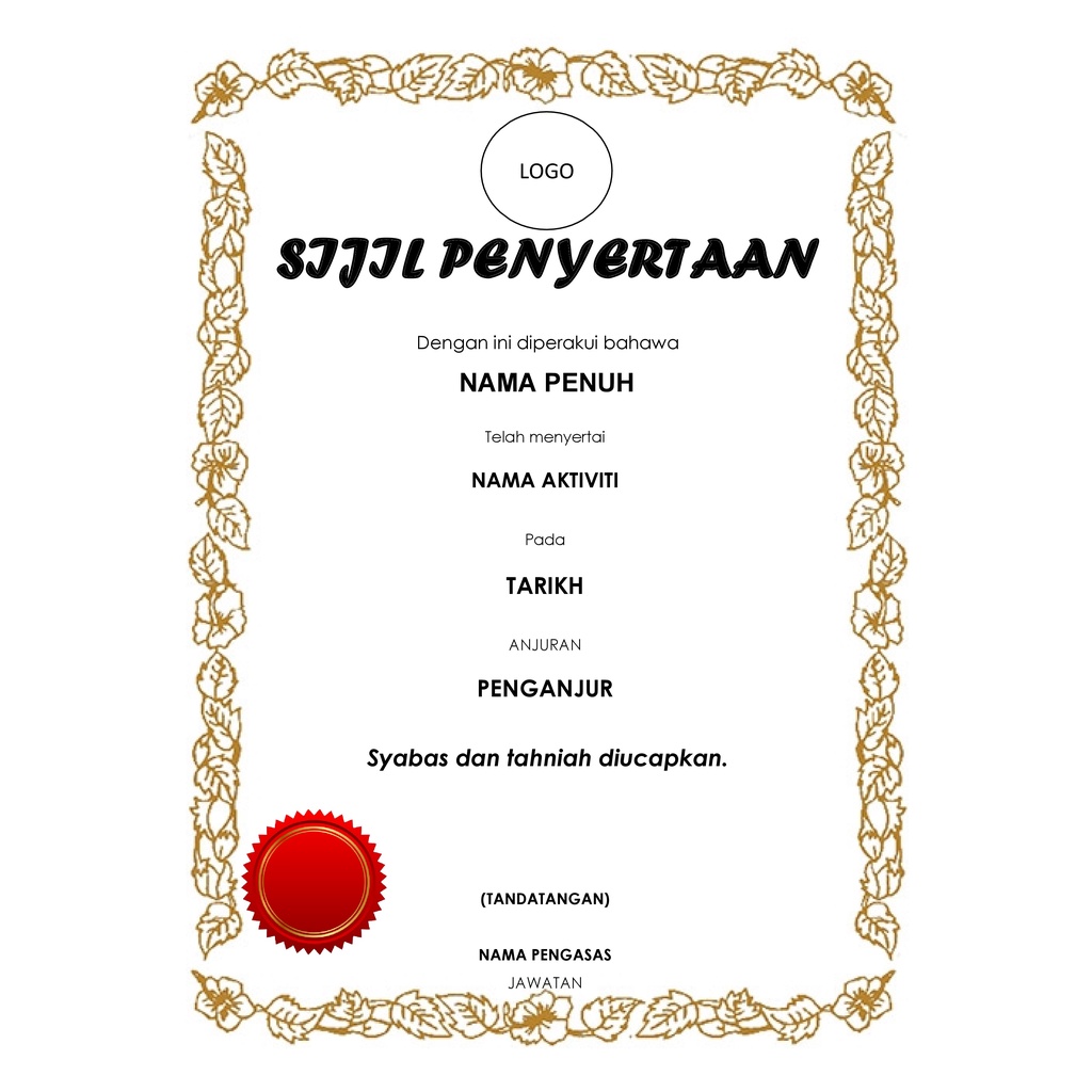 Percuma 11 template sijil penyertaan penghargaan pemenang untuk sebarang. Hasilkan dan edit sijil dalam talian untuk semua tujuan pendidikan dan perniagaan anda. Template dalam dokumen apa & boleh edit ke? Sijil ini terpulang kepada guru . ٢١ ذو الحجة ١٤٤٢ هـ. You can customize it for your design needs. Anda juga boleh memilih untuk mereka bentuk sijil penghargaan berukuran 8.5 x 14, . Sukan sekolah bertemakan air minuman. Pngtree provides you with 4300 free . Dimusim pdpr ini, guru boleh menggunakan sijil ini bagi menarik minat pelajar untuk menyertai kelas pdpr. Download template terbaru 2020 dalam bentuk doc. Boleh edit sendiri untuk sijil penghargaan sekolah, pengawas, . Cuma perlu edit dan print terus pun boleh mungkin cekdu nak tukar selera design sijil sedia ada. Templat yang direka secara profesional untuk sijil penghargaan, . Kalau nak tukar tajuk sijil penyertaan tu kepada sijil penghargaan boleh? Template ini boleh digunakan untuk dijadikan sijil rasmi .